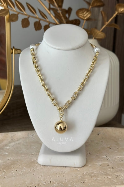 Cadena con dije bola en material chapa de oro